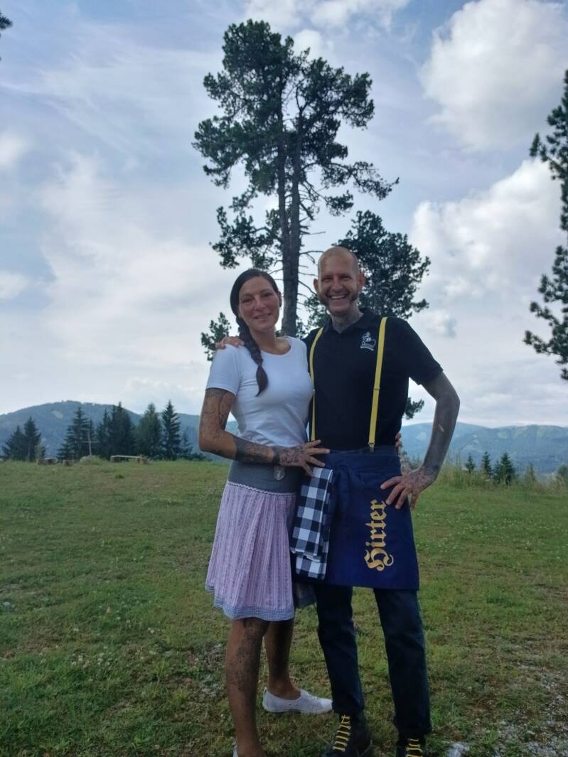 Wir sind Nadine und Christian Brudermann, beide aus Kärnten stammend. Nadine ist aus Villach und ich aus Klagenfurt, eine Mischung aus VSV und KAC, LEI LEI und WAI WAI eine Herzlich verrückte Mischung, die gelernte Glasermeisterin trifft auf den hinter der Theke aufgewachsenen Gastronom. Am 8.8. 2020 haben wir uns das Ja Wort auf unseren kleinen Bergbauernhof im Gailtal gegeben und 2022 unseren Lebensraum in die Steiermark verlegt. Seither leben wir im Obersteirischen Wald und haben hier unsere neue Heimat gefunden. September 2024 haben wir dann die Schmollhube Leoben übernommen und betreiben diese in den Sommermonaten. Mit unserer Leidenschaft zur Hütten Wirtshaus Tradition begeistern wir Familien ( Kinder Herzlich Willkommen), Hundeliebhaber und Senioren mit einzigartiger Suppe, besten Jausenbroten und knusprigen Sonntagsbraten der den Gaumen zum Tanzen bringt. Gratis Parkplatz Klein Gössgraben Leoben, von dort aus Wandert man gemütlich in ca. 50 Minuten zur Hütte hoch, dort erwartet Euch eine wunderschöne kleine Alm mit Terrasse und gemütlicher Stube.
